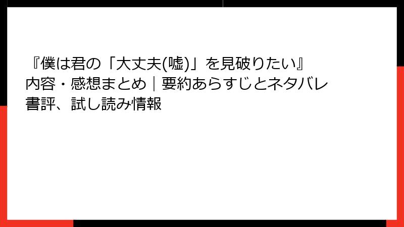 『僕は君の「大丈夫(嘘)」を見破りたい』無料試し読みと中古版入手ガイド