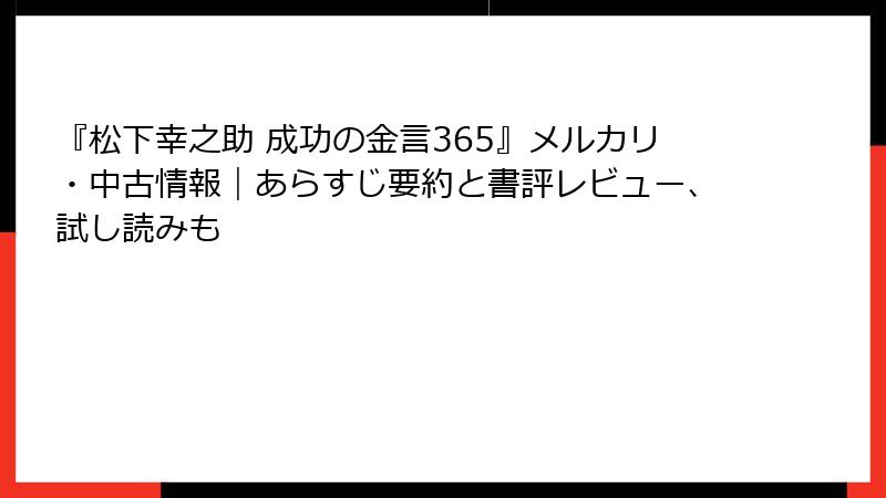 『松下幸之助 成功の金言365』を無料で試し読みする方法と中古版の入手ガイド