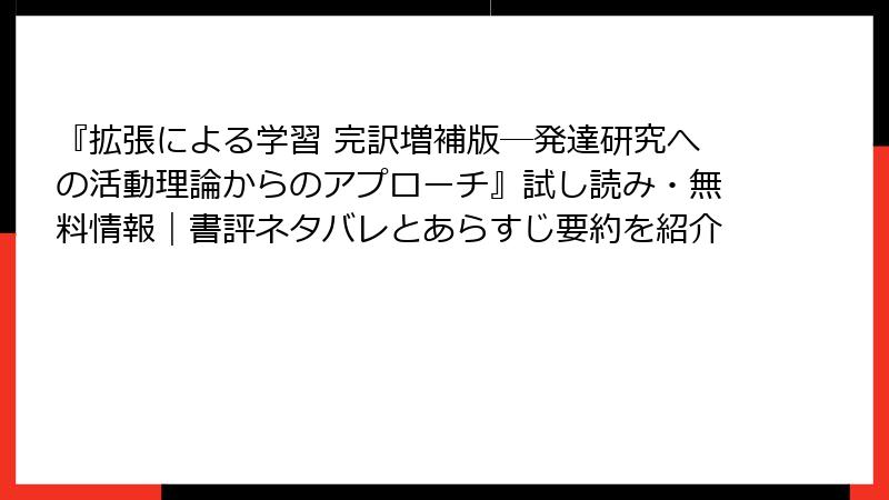 『拡張による学習 完訳増補版―発達研究への活動理論からのアプローチ』試し読み・無料情報|書評ネタバレとあらすじ要約を紹介