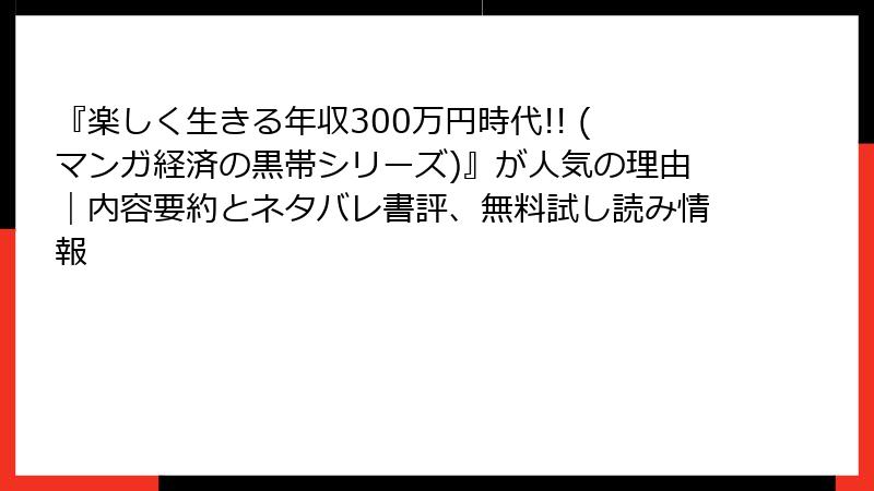 『楽しく生きる年収300万円時代!! (マンガ経済の黒帯シリーズ)』が人気の理由|内容要約とネタバレ書評、無料試し読み情報