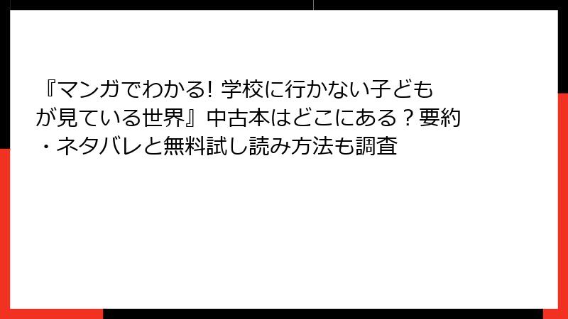 『マンガでわかる! 学校に行かない子どもが見ている世界』中古本はどこにある?要約・ネタバレと無料試し読み方法も調査