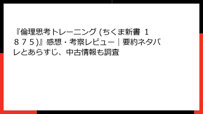 『倫理思考トレーニング』読者の声:レビュー・感想・書評まとめ(批判意見も詳しく)