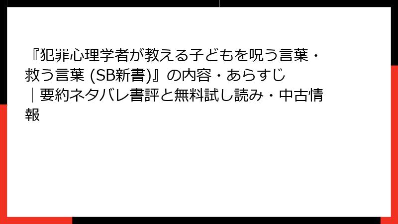 『犯罪心理学者が教える子どもを呪う言葉・救う言葉』の人気度・売れ行き・ベストセラー状況まとめ(2025年現在)