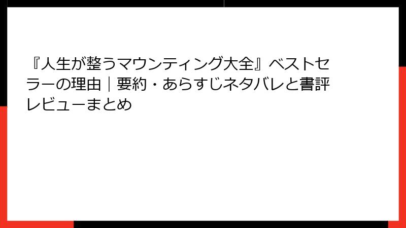 『人生が整うマウンティング大全』は、ユーモアで人間の弱さを直視したい人、マウンティングに疲れつつも上手く付き合いたい人に強くおすすめです。肯定的評価が圧倒的ですが、批判派の声も「マウント社会の鏡」として興味深い。笑いながら自分のマウント癖に気づかされる、痛快で中毒性のある一冊として、多くの読者が「人生が少し整った」と感じているようです。