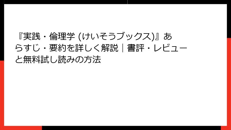 総じて、この本は「考えるためのツール」を提供する一冊。倫理学を「実践」したい人に強くおすすめです。