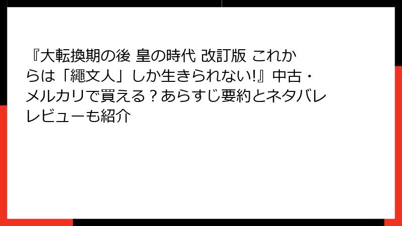 『大転換期の後 皇の時代 改訂版 これからは「繩文人」しか生きられない!』中古・メルカリで買える?あらすじ要約とネタバレレビューも紹介
