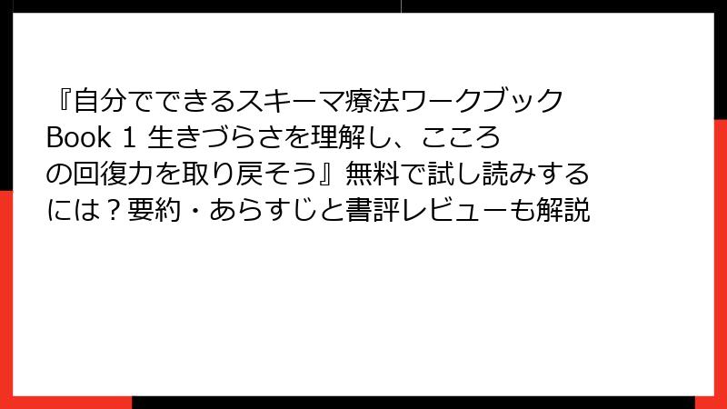 『自分でできるスキーマ療法ワークブック Book 1 生きづらさを理解し、こころの回復力を取り戻そう』無料で試し読みするには?要約・あらすじと書評レビューも解説