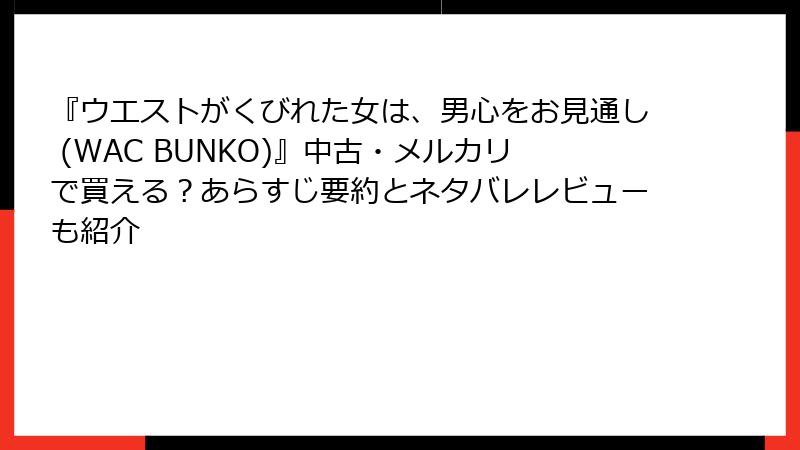『ウエストがくびれた女は、男心をお見通し』を無料試し読み&中古で手に入れる方法