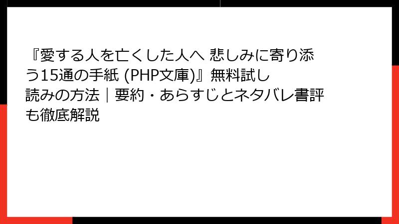 『愛する人を亡くした人へ 悲しみに寄り添う15通の手紙 (PHP文庫)』無料試し読みの方法|要約・あらすじとネタバレ書評も徹底解説
