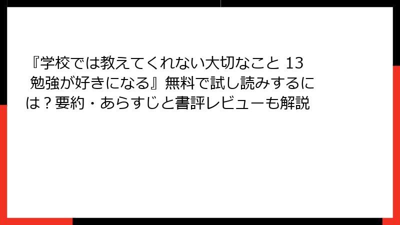 学校では教えてくれない大切なこと 13 勉強が好きになる:無料試し読みと中古版の入手ガイド