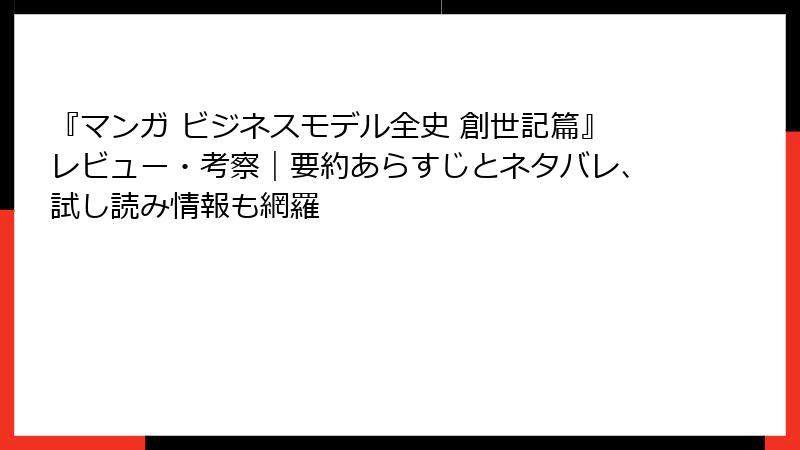 1. マンガで学ぶビジネスモデルの歴史:『マンガ ビジネスモデル全史 創世記篇』詳細あらすじとネタバレ付き要約