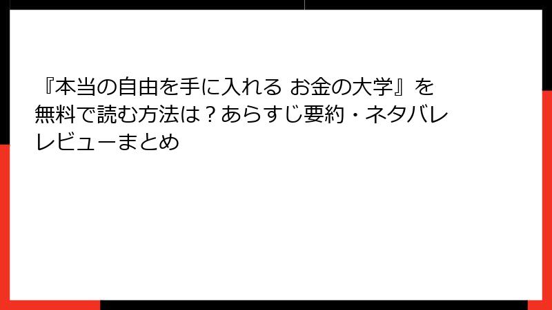 『本当の自由を手に入れる お金の大学』を無料試し読み&中古で手に入れる方法(2025年最新情報)
