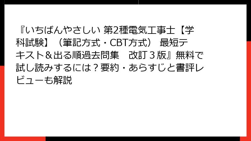 - 【実践ガイド】いちばんやさしい 第2種電気工事士【学科試験】 最短テキスト&出る順過去問集 改訂3版 を無料試し読み&中古で入手する方法