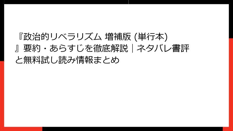 ジョン・ロールズの後期代表作『政治的リベラリズム 増補版』(筑摩書房、2022年刊)は、政治哲学の古典として根強い人気がありますが、定価が6,930円(税込)とやや高額です。そこで、購入前に内容を確認したい人のために無料試し読みの方法を、また予算を抑えたい人のために中古市場の状況を詳しくまとめます。情報は2025年12月現在の市場動向に基づいています。