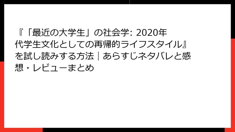 『「最近の大学生」の社会学:2020年代学生文化としての再帰的ライフスタイル』詳しいあらすじ・要約(ネタバレ満載)