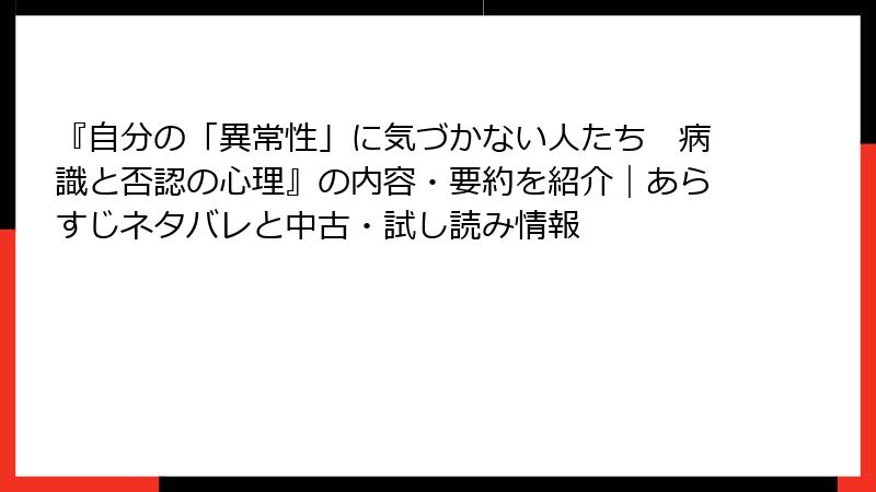 西多昌規『自分の「異常性」に気づかない人たち ― 病識と否認の心理』 無料試し読みと中古版入手ガイド
