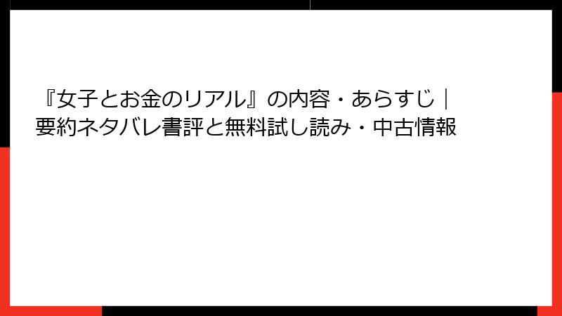 | 比較ポイント | 『女子とお金のリアル』の状況 | 参考(同ジャンル平均) |