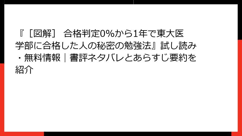 『[図解] 合格判定0%から1年で東大医学部に合格した人の秘密の勉強法』試し読み・無料情報|書評ネタバレとあらすじ要約を紹介