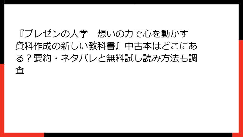 『プレゼンの大学 想いの力で心を動かす 資料作成の新しい教科書』を無料で試し読みする方法と中古版の入手事情