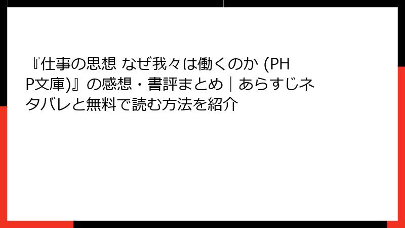 『仕事の思想 なぜ我々は働くのか』を無料で試し読みする方法と中古本の入手ガイド