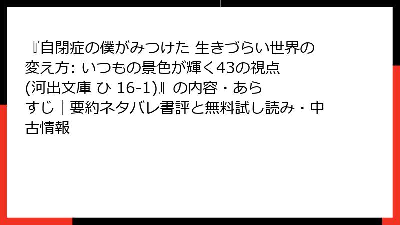 自閉症の僕がみつけた 生きづらい世界の変え方:無料試し読みと中古入手のガイド