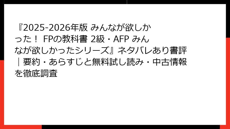 2025-2026年版 みんなが欲しかった! FPの教科書 2級・AFP の無料試し読みと中古版入手ガイド
