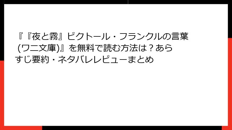 『夜と霧』ビクトール・フランクルの言葉:無料試し読みと中古版の入手方法
