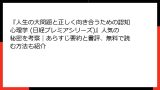 書籍「仕事も対人関係も 落ち着けば、うまくいく」の無料試し読みと中古版入手方法