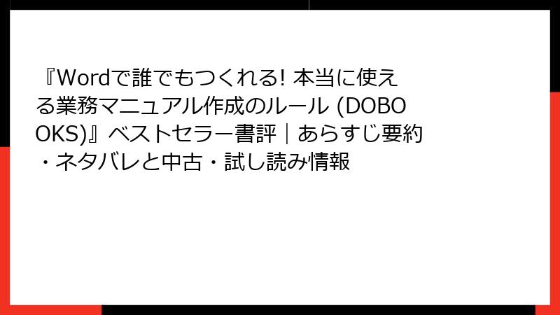 『Wordで誰でもつくれる! 本当に使える業務マニュアル作成のルール (DOBOOKS)』ベストセラー書評|あらすじ要約・ネタバレと中古・試し読み情報
