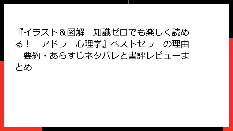 これらのレビューから、書籍の魅力はイラストと図解による視覚的なわかりやすさ、そしてアドラー自身のエピソードを交えたエンターテイメント性にあるようです。批判的なレビュー(例:「おかしい」「難しい」)は見当たらず、すべてポジティブです。