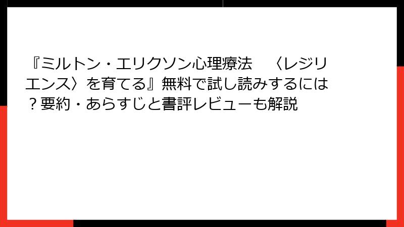 の見出しタグから始めて、ブログ記事形式で出力して。複数の タグを使用して、読み応えがあるように。HTMLで出力。 や などの箇条書きのHTMLタグや、tableタグも使用してOK。ただし、リンクやURLは、絶対に、挿入しない。 この書籍を、Kindleなどで無料で試し読みする方法について、詳しく。また、この書籍の中古版が、どこにあるのか、例えばメルカリに存在するのか、といった点についても、詳しく。単一の の見出しタグから始めて、ブログ記事形式で出力して。複数の タグを使用して、読み応えがあるように。HTMLで出力。 や などの箇条書きのHTMLタグや、tableタグも使用してOK。ただし、リンクやURLは、絶対に、挿入しない。 この書籍の人気度合いや、売れ行き、「ベストセラー」状態や状況について、詳しく。単一の の見出しタグから始めて、ブログ記事形式で出力して。複数の タグを使用して、読み応えがあるように。HTMLで出力。 や などの箇条書きのHTMLタグや、tableタグも使用してOK。ただし、リンクやURLは、絶対に、挿入しない。 この書籍を読むことをおススメする読者像や、その理由等について、詳しく。この書籍の著者・作者についても、詳しく。単一の の見出しタグから始めて、ブログ記事形式で出力して。複数の タグを使用して、読み応えがあるように。HTMLで出力。 や などの箇条書きのHTMLタグや、tableタグも使用してOK。ただし、リンクやURLは、絶対に、挿入しない。 書籍ガイド: ミルトン・エリクソン心理療法 〈レジリエンス〉を育てる – おすすめ読者と著者紹介