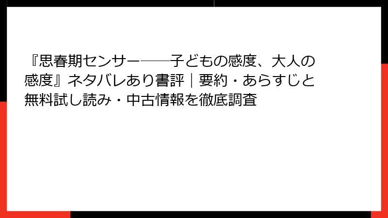 書籍のあらすじと要約:思春期センサー──子どもの感度、大人の感度