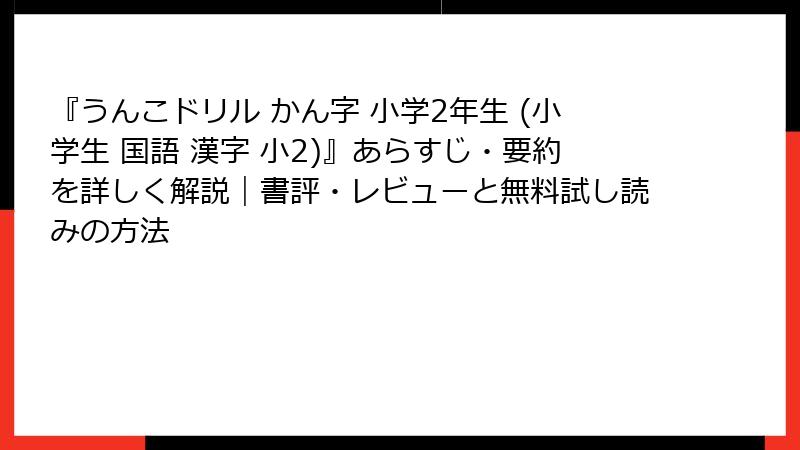 「うんこドリル かん字 小学2年生」は、子供向けの人気漢字学習ドリルで、デジタル版も存在します。無料で試し読みする方法として、主にKindleや他の電子書籍プラットフォームが利用可能です。これにより、購入前に内容を確認でき、子供の興味を引きやすいユーモラスな例文を事前にチェックできます。Kindle版はデジタル形式で即時アクセス可能で、無料サンプルが標準的に提供されています。