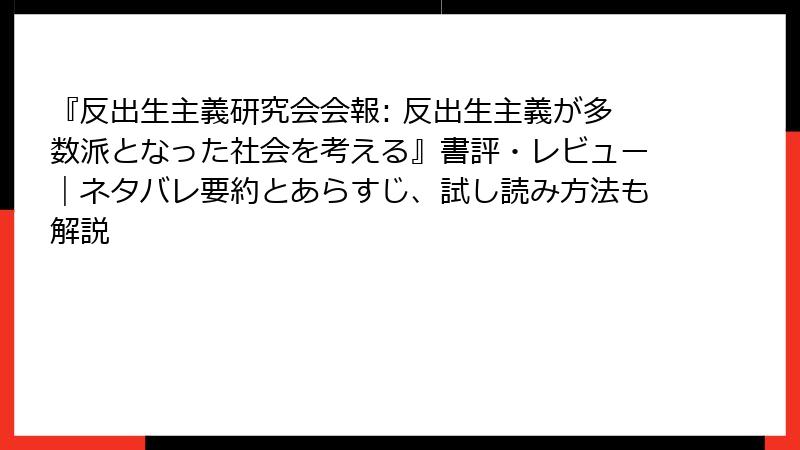 反出生主義研究会会報: 反出生主義が多数派となった社会を考える – 無料試し読みと中古版入手ガイド