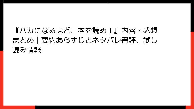 - 書籍「バカになるほど、本を読め!」のおすすめ読者と著者紹介