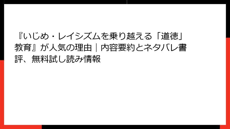 書籍『いじめ・レイシズムを乗り越える「道徳」教育』の詳細なあらすじと要約
