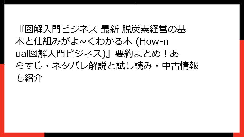 - 図解入門ビジネス 最新 脱炭素経営の基本と仕組みがよ~くわかる本 – 無料試し読みと中古版入手ガイド