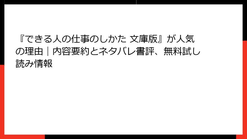 できる人の仕事のしかた 文庫版 – 無料試し読みと中古版入手ガイド