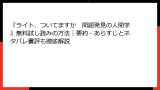 - 実践重視: 原理説明より事例が多いため、初心者でも入りやすい。運命を変えるためのツールとして、現代社会の情報過多を解決する手段と考察。
