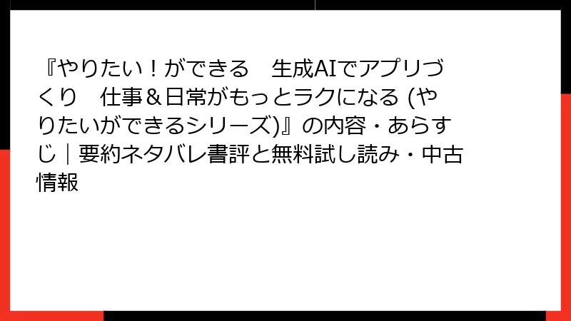 生成AIでアプリづくり書籍の無料試し読みと中古入手ガイド