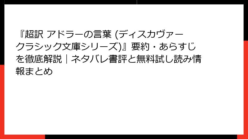 『超訳 アドラーの言葉 (ディスカヴァークラシック文庫シリーズ)』要約・あらすじを徹底解説|ネタバレ書評と無料試し読み情報まとめ