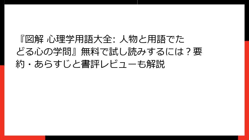これらのサービスでは、試し読みの範囲がプラットフォームによって異なり、時には導入章全体が読める場合もあります。心理学入門として推奨される本書は、こうしたサンプルで図解のわかりやすさを体感できます。