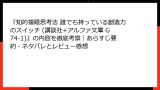 | 極論的な内容 | 「極論的な部分や、状況によるのでは?と感じる部分も沢山あったが、敢えてそのように書いていると思えば十分参考にすべき内容が多かったと思います。」(noteの読書メモより)。このように、過激な表現が読者を困惑させるが、意図的だと解釈する声も。 |