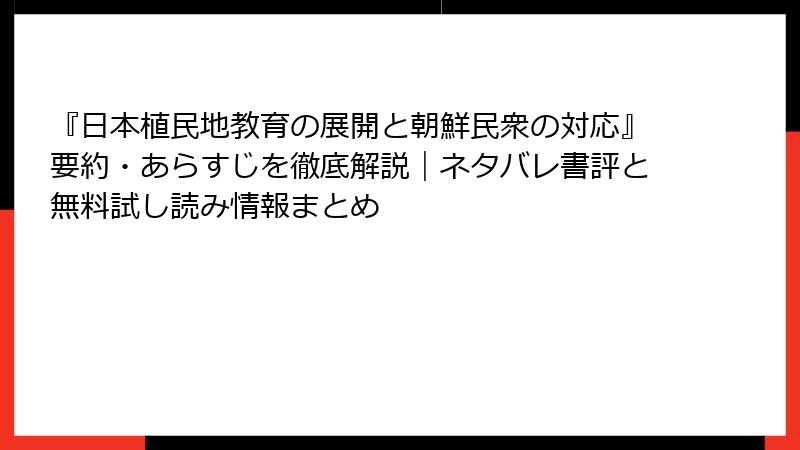 『日本植民地教育の展開と朝鮮民衆の対応』要約・あらすじを徹底解説|ネタバレ書評と無料試し読み情報まとめ