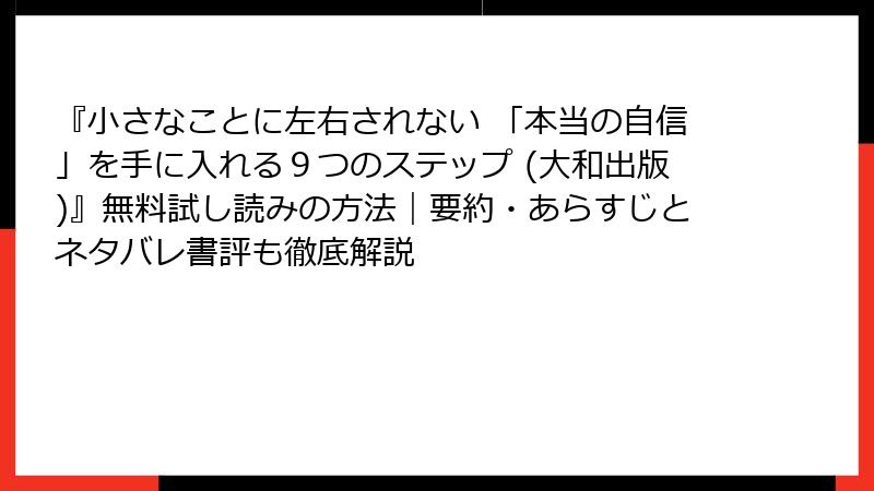 小さなことに左右されない 「本当の自信」を手に入れる9つのステップ – 無料試し読みと中古版の入手ガイド
