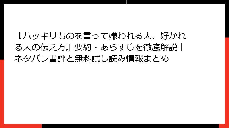 書籍「ハッキリものを言って嫌われる人、好かれる人の伝え方」の無料試し読みと中古版入手ガイド