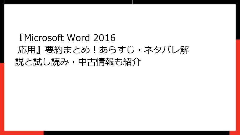 Microsoft Word 2016 応用: 詳細な要約とネタバレ解説