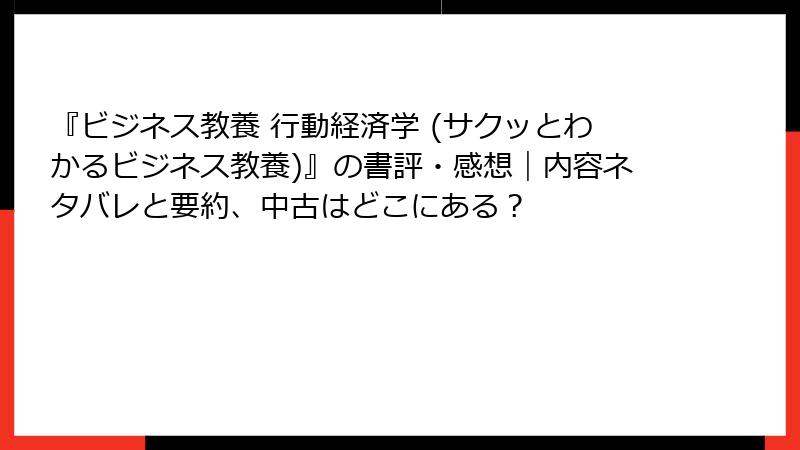- 関連トレンド:行動経済学ブームで、似たタイトルの新書(例: 「すぐに使えるビジネス教養 行動経済学」)も登場し、ジャンル全体の人気を後押し。