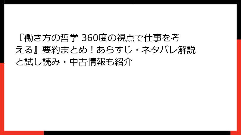 働き方の哲学:360度の視点で仕事を考える – 詳細な要約とネタバレ