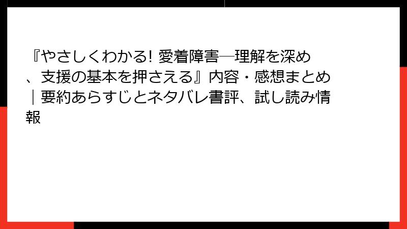 1. 書籍「やさしくわかる! 愛着障害―理解を深め、支援の基本を押さえる」の詳細要約